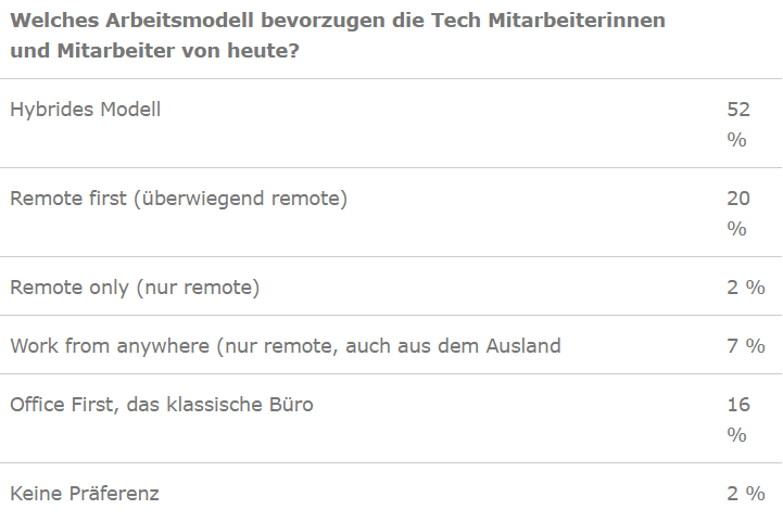Neue Studie Fachkräfte Tech und IT - Mehr als die Hälfte bevorzugen hybride Arbeitsmodelle