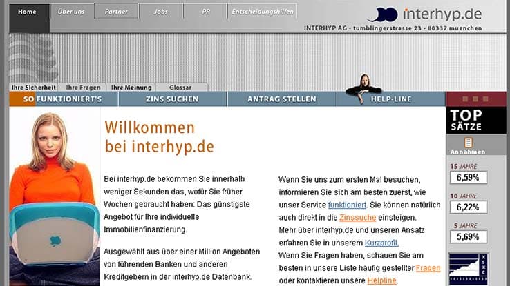 Die Erfolgsgeschichte der Interhyp Gruppe beginnt mit einer guten und sehr nützlichen Idee: Die beiden Gründer Robert Haselsteiner und Marcus Wolsdorf wollen in der Baufinanzierung für Transparenz sorgen und als Vermittler im Internet günstige Baufinanzierungen für Privatkunden anbieten.