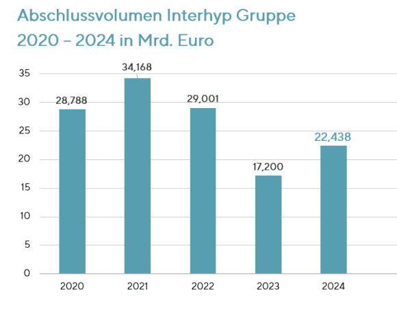 In 2024 hat die Interhyp Gruppe ein Abschlussvolumen in Höhe von 22,438 Milliarden Euro erwirtschaftet.